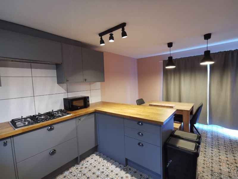 • Fully equipped kitchen (microwave, oven, kettle, washing machine, etc.),